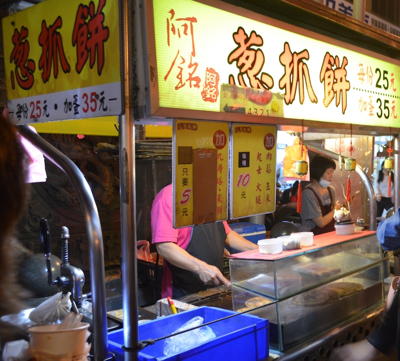 Cong Zhua Bing 蔥抓餅 atau yang dalam bahasa Inggrisnya ialah Onion Pancakes ini merupakan jajanan khas Taiwan yang harus dicoba. Bentuknya seperti roti prata tapi memakai daun bawang. Ini banyak dijual di pinggir jalan.