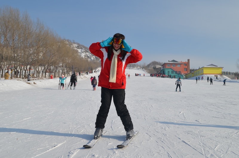 It’s my first time to skiing.. Excited campur tegang, itulah yang saya rasakan waktu itu. Apalagi waktu itu badan saya kurang fit, kepala agak pusing, flu juga jadi banyak ingusnya, kaki juga jadi agak gemetaran. Kebetulan sih, instruktur yang pegang saya itu masih muda, jadi lebih enak ngobrolnya, saya juga jadinya gak begitu tegang. Dia gak bisa bahasa Inggris. Untungnya sih waktu itu saya sudah bisa berkomunikasi dengan orang China. Katanya, dia itu masih mahasiswa dan mengambil part time sebagai instruktur ski di sana. Instruktur saya ini “baik”, dia bahkan mau buangin semua tissue bekas ingus saya. LOL. Eh ternyata, ujung-ujungnya dia minta tips alias uang lebih!
